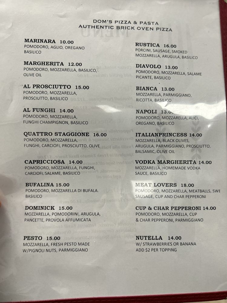 Dom's Menu